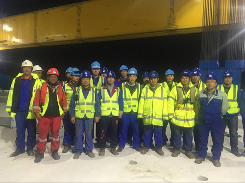 發(fā)布日期:2016-12-30施工現(xiàn)場實況:科威特-GS Doha-link,天業(yè)通聯(lián)不僅向GS Doha-link項目提供了一整套的1700t FSLM 設(shè)備,而且積極深入的參與到了現(xiàn)場的橋梁施工作業(yè)當(dāng)中。截止到2016年12月29日,由天業(yè)通聯(lián)提供的1700t 運(yùn)架提設(shè)備,圓滿完成2016年架梁任務(wù),累計架設(shè)完成混凝土箱梁56孔共計112片。