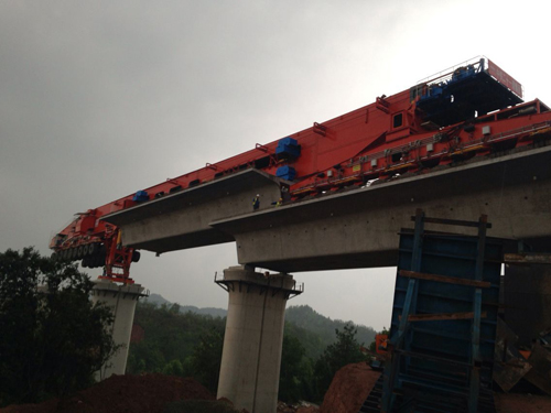 Publication Date:2017-04-17Till 17th April of 2017, the 900t Special Launching Carrier made by Tolian has sucessfully finished 100 pieces of concrete box girder placing in the project of Chang-Gan Railway Line. The equipment is highly accepted by the customer and supervisoin company because of excellent performance and high efficiency.